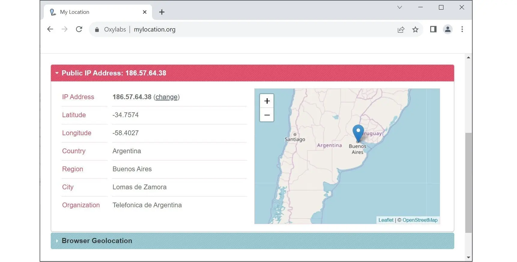 Optionally, using an in-app browser, you can navigate to a location detection website and see if the location and IP align with your expectations.