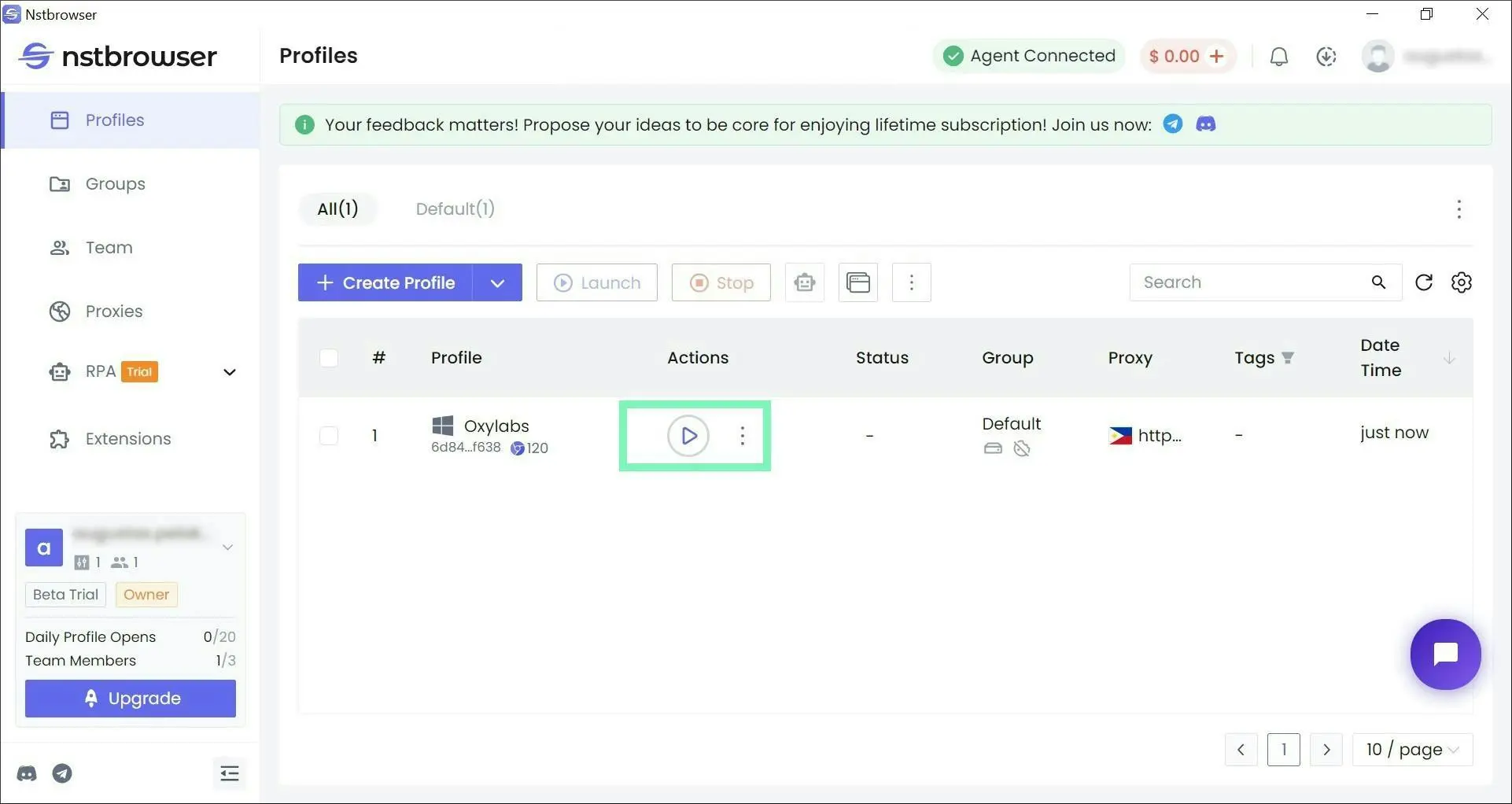 **Step 9:** Finally, start ▶ the newly created profile to launch a Chromium browser window.