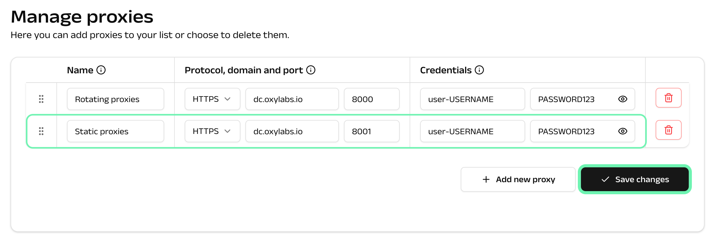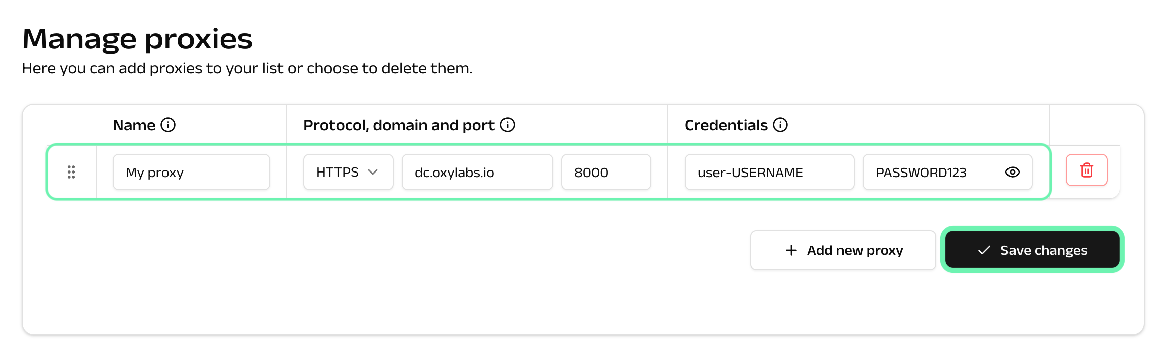 Click the **+Add new proxy** button.