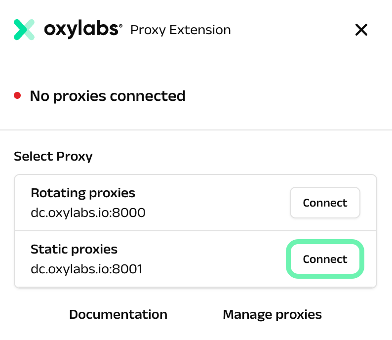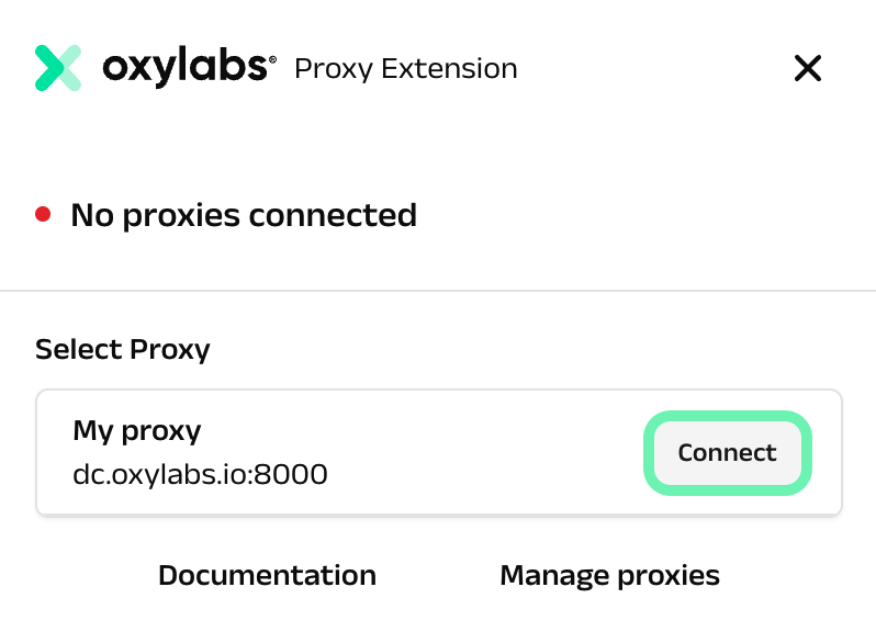 [**Download**](https://chrome.google.com/webstore/detail/oxylabs-proxy-extension/infajoaodhhdogakhloedbppcbeajhoo) and click the extension icon to open the application.